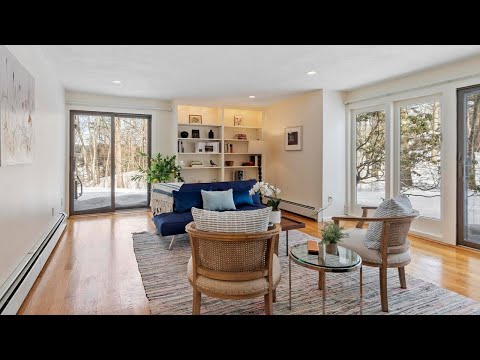 Wake up to peaceful, seasonal pond views from this rare one-level end-unit residence in Farrar Pond Village which offers all living space on a single floor for effortless daily living. The layout includes an inviting living area with fireplace and custom bookshelves, a dining space that flows easily for everyday meals or gatherings, a well-organized kitchen, and flexible rooms accommodating sleep, work, or guest space. A screened porch provides a tranquil place to relax while enjoying the water views and surrounding nature-rich landscape. Additional highlights include wood floors, generous closets, custom built-ins, convenient first floor laundry, a newer Lochinvar heating system, carport parking, and an unfinished lower level for future use or storage. Professionally managed, the community features gardens, open fields, trails, conservation land, and a canoe landing with dock, all close to local amenities, commuter rail access, and major routes.